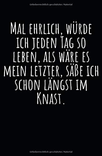 Mal Ehrlich Wurde Ich Jeden Tag So Leben Als Ware Es Mein Letzter Sasse Ich Schon Langst Im Knast Notizbuch Mit Spruch Zeilen Und Seitenzahlen Tagebuch Oder Geschenk German Edition Notebook