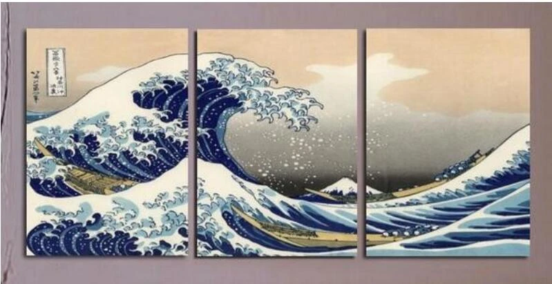 Japan Malerei Landschaft Leinwand Malerei 3 Panels Kunst Bild Grosse Welle Kanagawa Katsushika Hokusai Japanischen Olgemalde Oil Painting Japanese Oil Paintingcanvas Painting Aliexpress