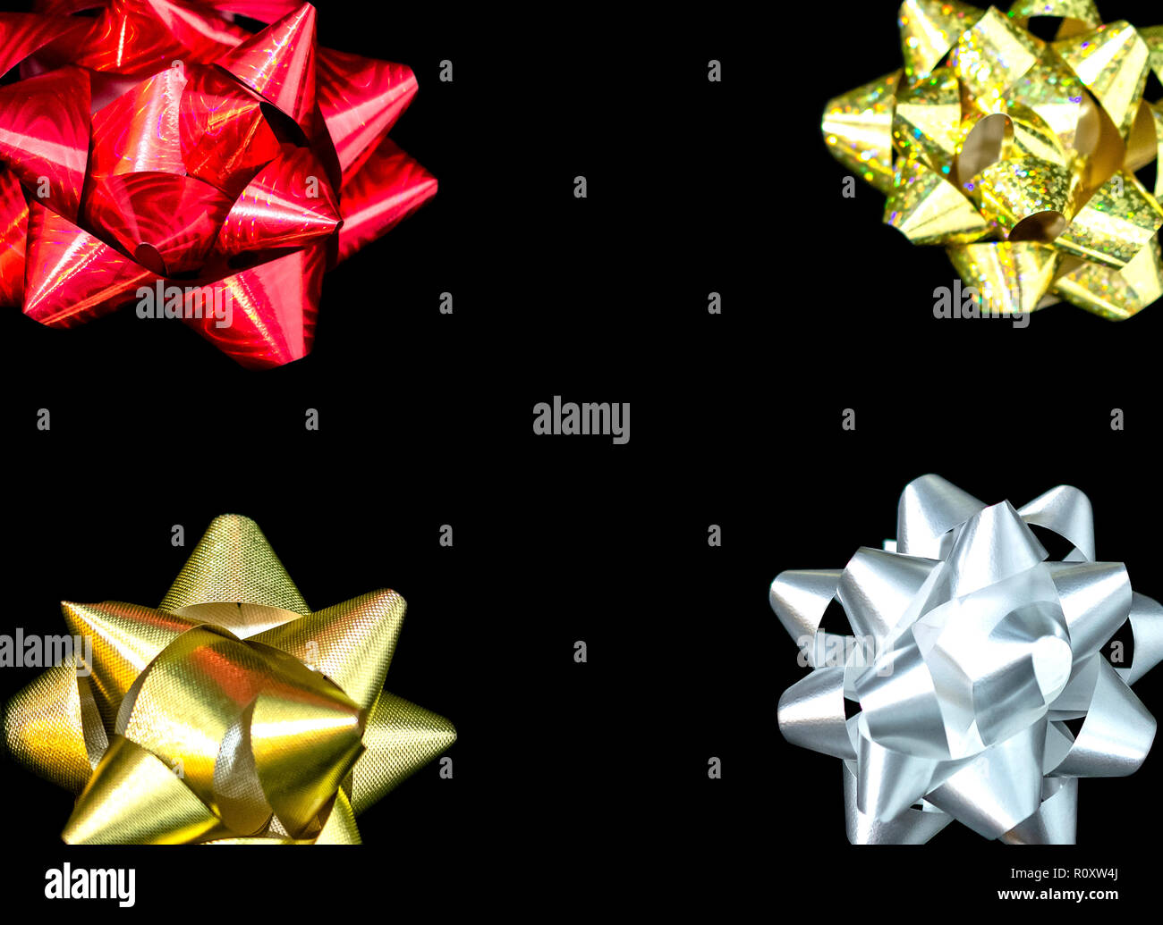 Vier 4 Weihnachten Satinschleife Bander Matt Gold Holographic Rot Gold Weiss In Der Farbe Schwarz Hintergrund Zimmer Fur Kopieren Stockfotografie Alamy
