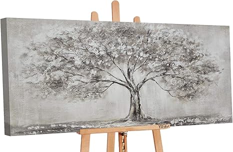 Ys Art Premium Acryl Gemalde Lebensbaum Handgemalte Leinwand Bilder Wandbild Acrylgemalde Kunst Leinwand Unikat Grau 100 X 50 Cm Amazon De Kuche Haushalt