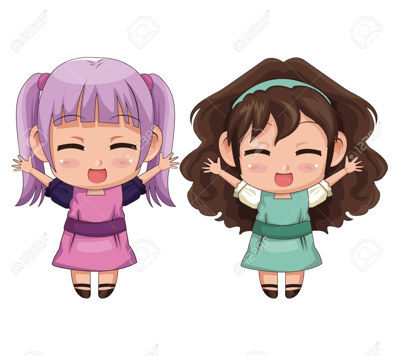 Bunte Ganzkorper Paar Cute Anime Girl Gesichtsausdruck Lacheln Und Springen Vektor Illustration Lizenzfrei Nutzbare Vektorgrafiken Clip Arts Illustrationen Image 79339124