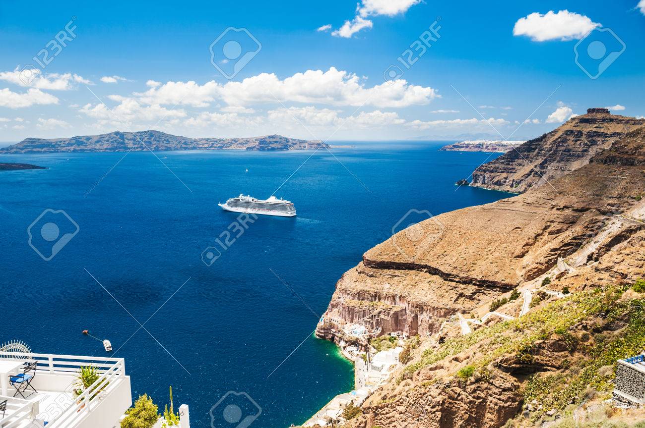 Kreuzfahrtschiffe In Der Nahe Der Griechischen Inseln Schone Landschaft Mit Blick Aufs Meer Insel Santorin Griechenland Lizenzfreie Fotos Bilder Und Stock Fotografie Image 45182405