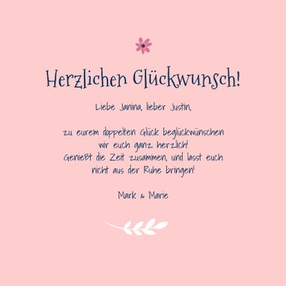 Zwei auf einen streich so ein glück. Ergänzen sie die glückwunschkarte zur geburt mit einem passenden spruch und machen sie so noch individueller. In deutschland werden in 1 5 prozent aller fälle zwillinge geboren.